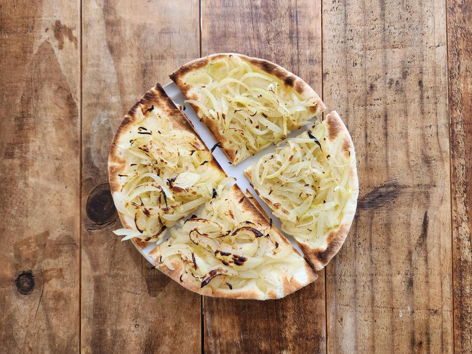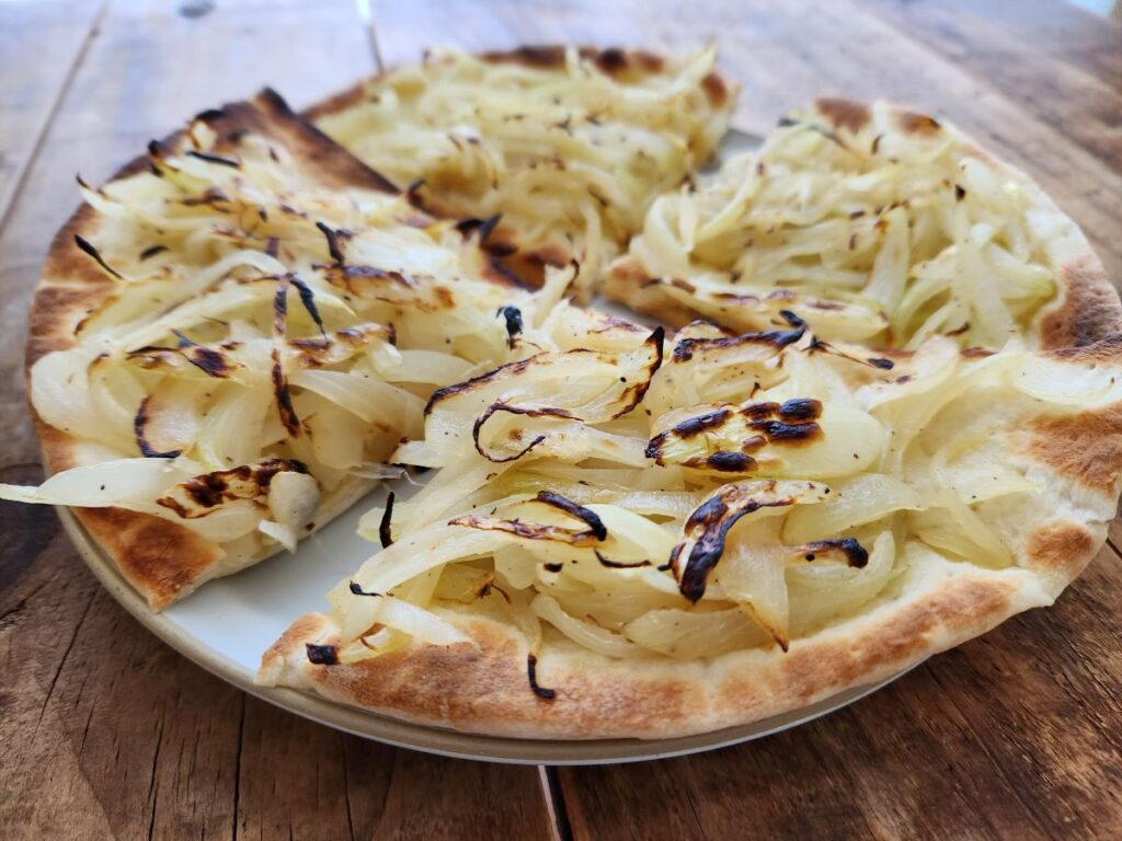 タマネギをたっぷりのせた厚め生地のアルゼンチン風ピザ。
