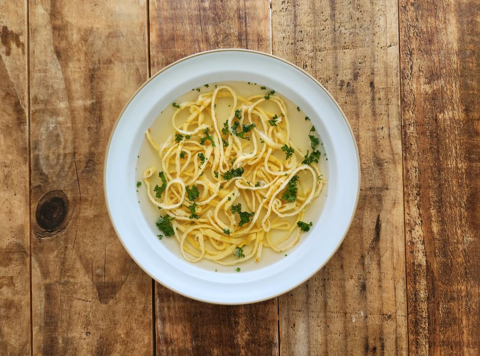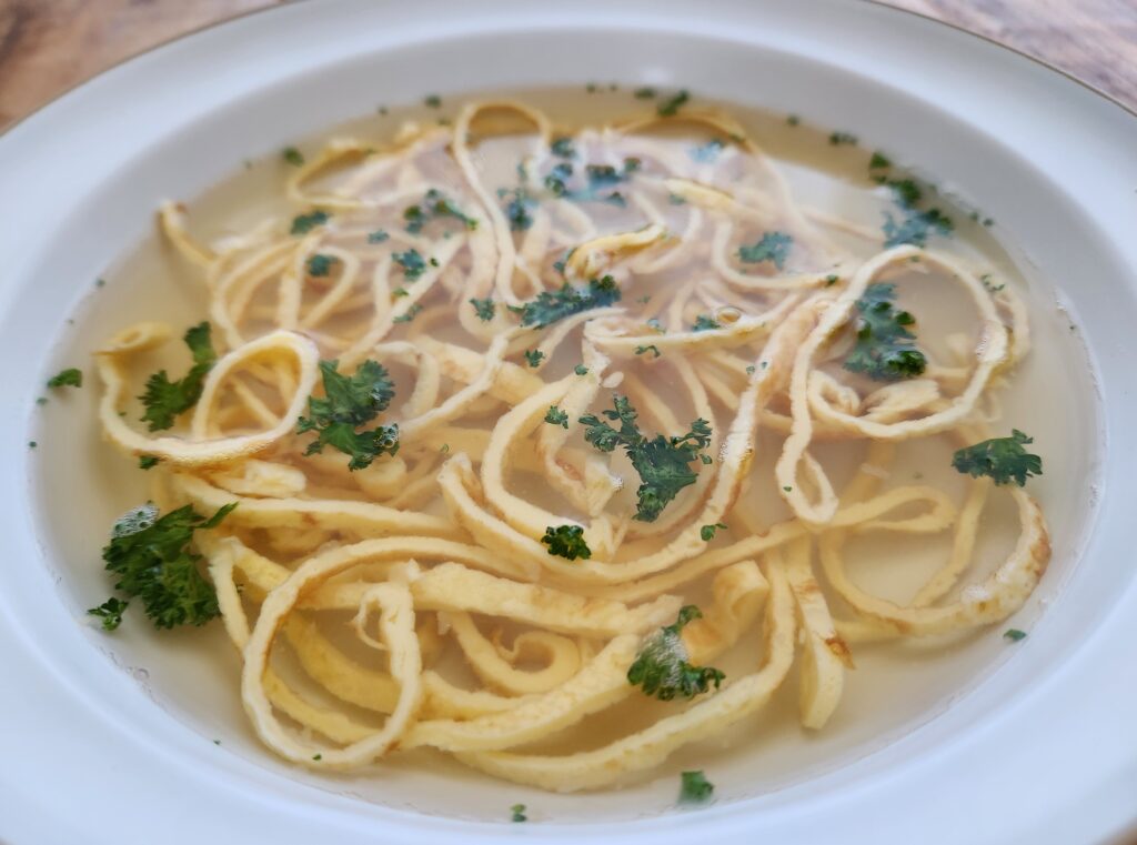 もともとパラチンケン生地を焼いた余りを細く切ってスープに入れたのが始まりらしいので
