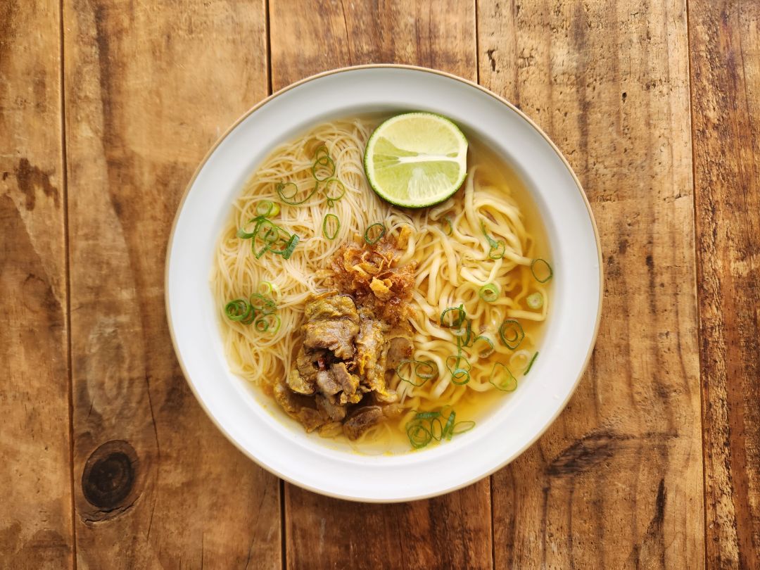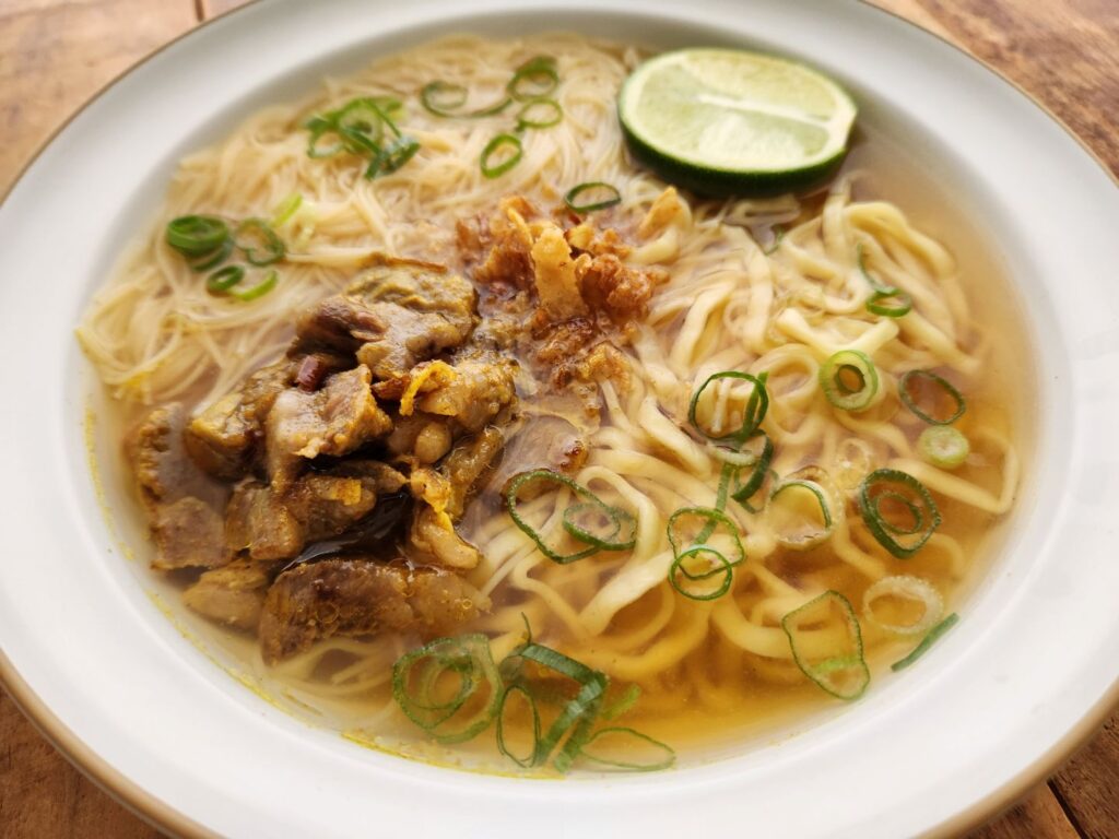 ソト・ハティ・ブヤは、屋台や家庭で親しまれているスープ麺料理。