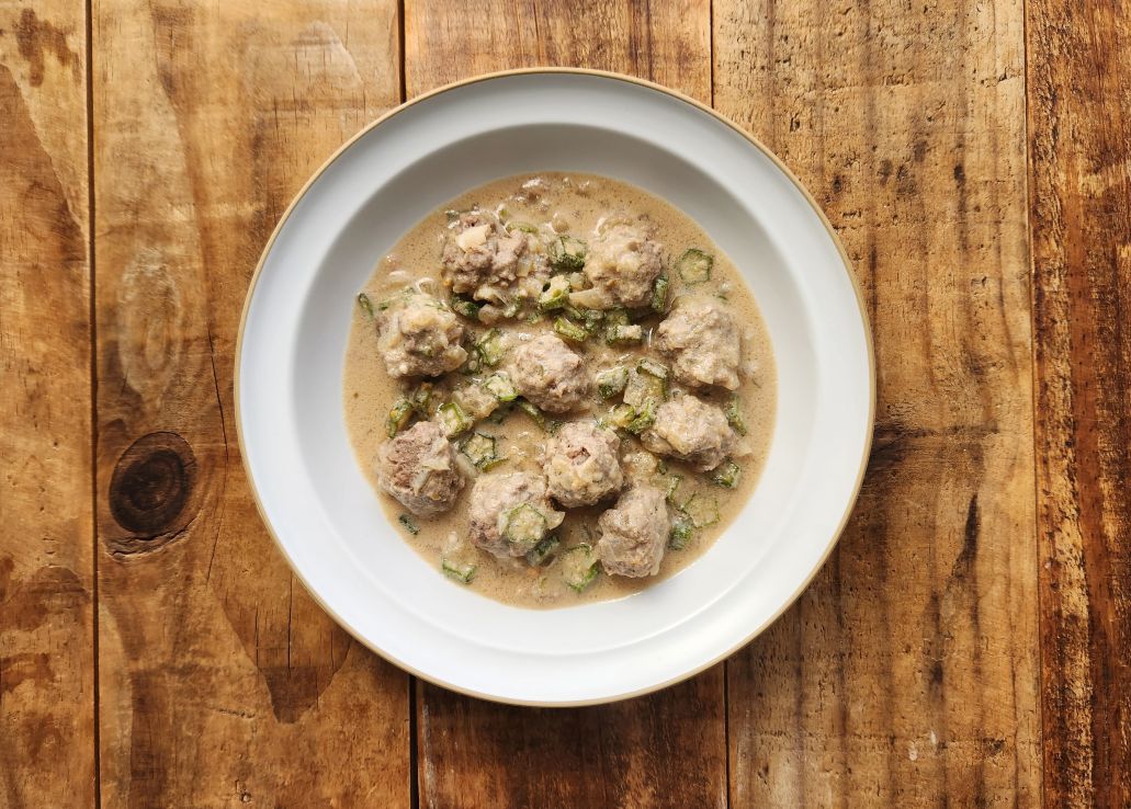 オクラのとろみが特徴的です。アフリカ版、ミートボールですね。