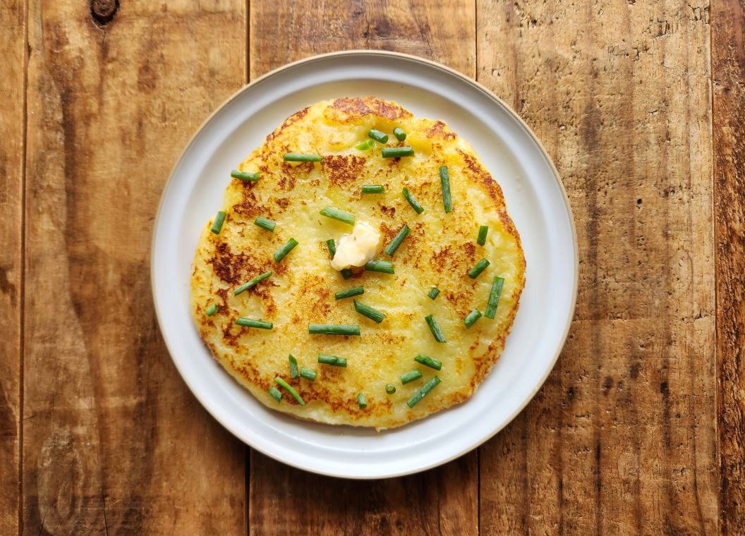 ③ フライパンに油を入れて熱し、中火で両面を黄金色になるまで焼く。バターをのせて青ネギを散らしたら完成。