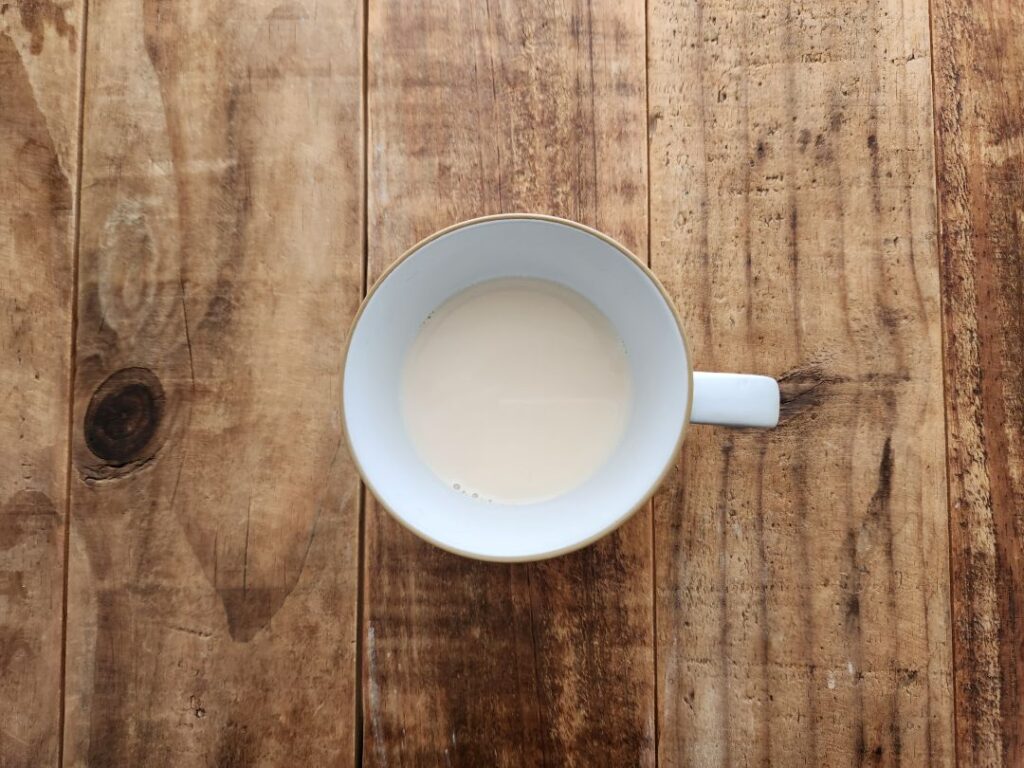 ② 牛乳を加え、さらに弱火で2〜3分温める(沸騰させない)。