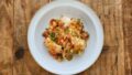① トウモロコシの粒を外し、牛乳、卵、溶かしたバター、塩を加えてブレンダーやフードプロセッサーなどでなめらかにする(完全にペースト状でなくてもOK)。モッツァレラチーズを細かくほぐして混ぜる。